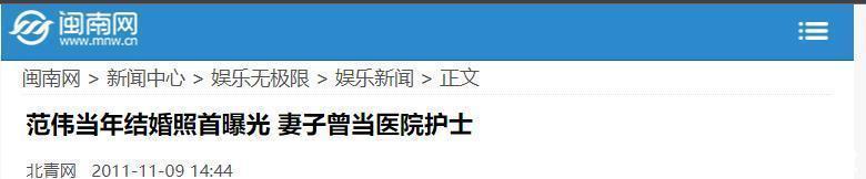 范伟当年结婚照首曝光 妻子曾当医院护士 闽南-11-09